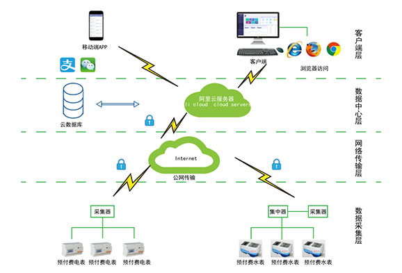 對于分布不同省、地市或同地市不同區(qū)域的連鎖商業(yè)、集團(tuán)、百貨、門店、物業(yè)、院校等業(yè)務(wù)分散,要求集中管理、線上支付,低額提醒、欠費(fèi)告警。但常規(guī)的本地插卡付費(fèi)、本地預(yù)付費(fèi)并不能完全滿足客戶管理需求,預(yù)付費(fèi)云平臺應(yīng)運(yùn)而生。AcrelCloud-3200水電預(yù)付費(fèi)云平臺無縫集成商業(yè)、物業(yè)公司、集團(tuán)企業(yè)、院校等分散布置的安科瑞DDSY/ADF系列電子式預(yù)付費(fèi)電能表、閥控智能水表等,提供微信、支付寶、銀聯(lián)等可選的在線支付方式,大大方便了用戶充值、圈存,提供預(yù)警和充值、退費(fèi)、電能消耗等記錄查詢,方便用戶和管理方的數(shù)據(jù)統(tǒng)計(jì)和財(cái)務(wù)分析,提供先交費(fèi)后使用的管控機(jī)制,大大降低了管理部門的收費(fèi)成本。
